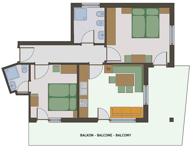 - Komplett eingerichtete Wohnküche mit Sofa, Sat TV, WLAN, Geschirr, Kühlschrank mit Gefrierfach, Kaffeemaschine, Mocca, Toaster, Elektroherd, Geschirrspülmaschine, Wasserkocher, Tischwäsche und Trockentücher, Balkon mit herrlichem Ausblick zum Latemar
